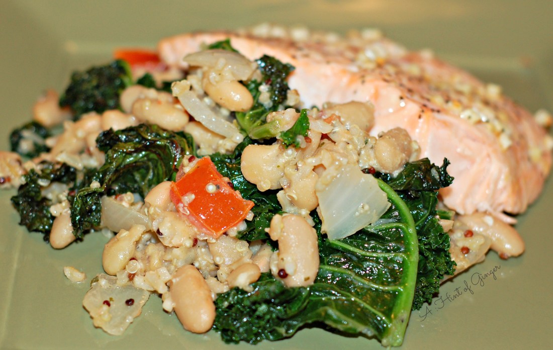 I don’t know about you but I’m constantly going to a restaurant and loving a dish or an appetizer I got there. I find myself thinking of that dish several days, even months later and my mouth watering to eat the dish again. However, that restaurant is often in another state or country, too expensive to have that often, or it just seems impractical to go get the same thing I just had when there are so many other options to try. Well, for the past week I have been craving a meal I had nearly two weeks ago but I’m not about to drive over an hour away to have it again. Instead, I decided to see if I could create my own version that I could then crave instead of the original. I had no clue how it would turn out but I am happy with how it turned out and even better, I have satisfied my craving! So below is my version of Duclaw’s wilted kale and quinoa salad. At the time ,I tried it with grilled chicken but this time I decided to try it out with baked salmon. Hope you enjoy the recipe as much as I do and that you find yourself craving it once you’ve tried it.
