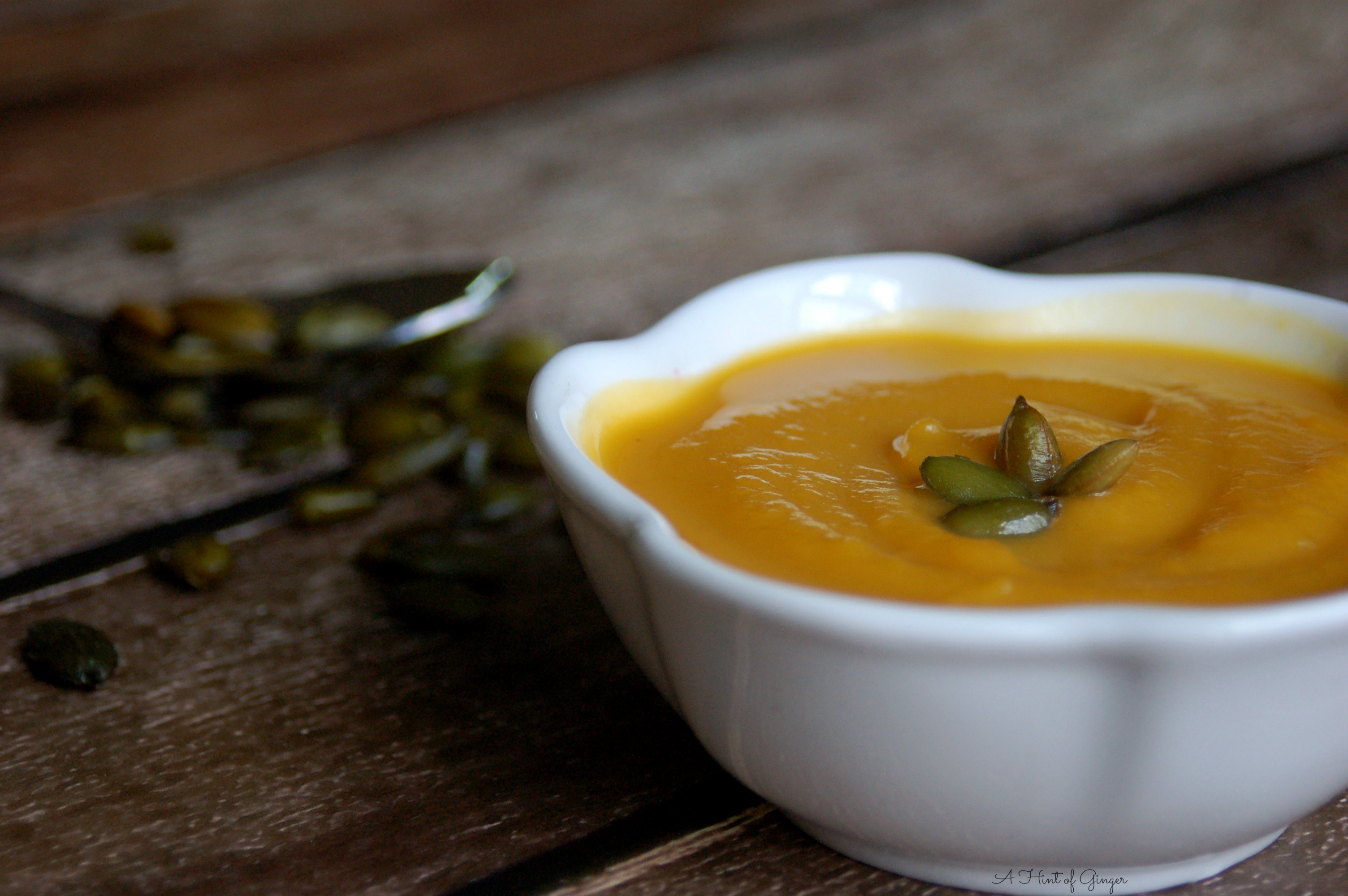 {A Hint of Ginger | Toppings}: While chopping up the pumpkin, keep some of the seeds to roast and top the soup with before serving.