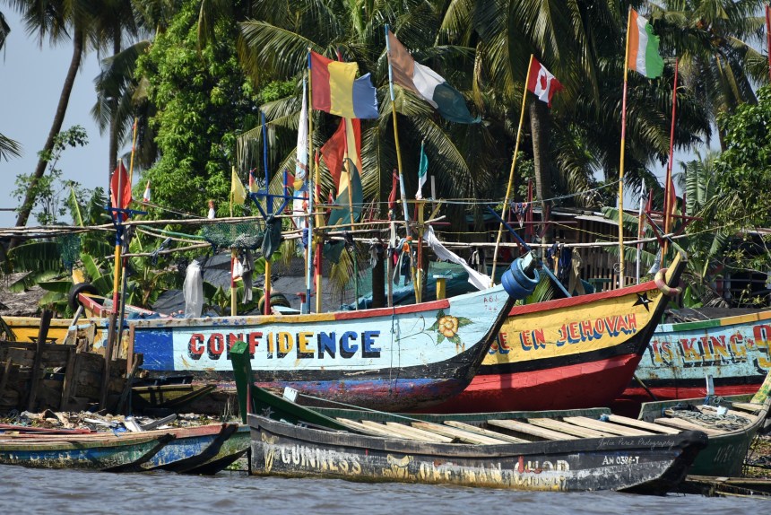 Our route didn’t stop on land when we arrived in Abidjan instead we took to the water seeing the city from the lagoon, experiencing a glimpse into the life on the water, the contrast of small hollowed out man made canoes with big tanker ships, dredges, and barges. Watched as men and boys rested after a morning of fishing, others still out catching what they could. As if we hadn’t eaten enough at our Thanksgiving feast the night before, we paired our tour of the lagoon with a lunch of local dishes at Rosa Beach. We feasted on perfectly grilled whole merou sitting on a dock. The table was packed full of all the sides, potato and yam fries, alloko, attieke, salad, tomato sauce, and piment sauce. We were left again with a food coma that we rested off on the boat.